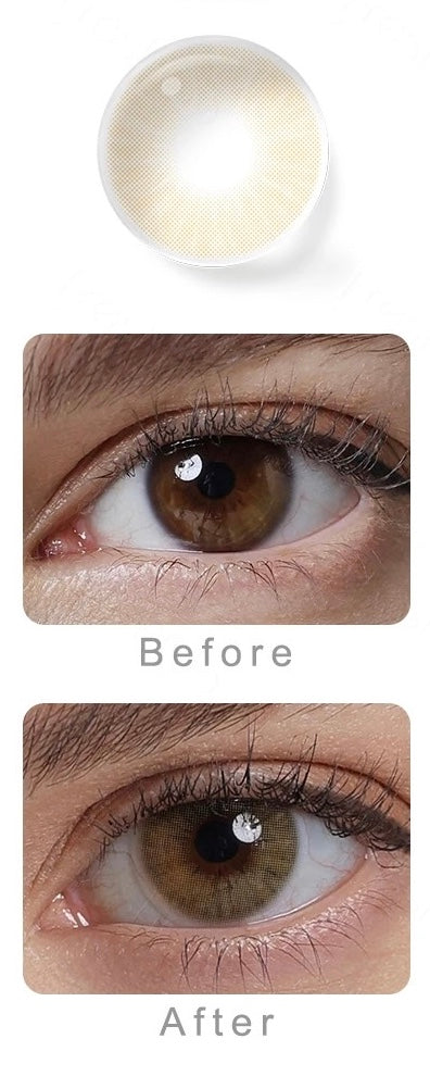 Ochre brown features one-tone shade colored contacts. Its ochre brown background with no limbal ring gives subtle blending for a shine and sparkle look. Just perfect for someone that wants to enhance eyes color yet keep natural eyes.